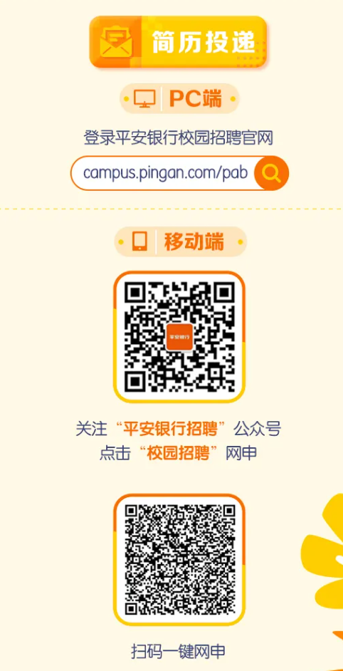 PC 端:登录平安银行校园招聘官网 campus.pingan.com/pab