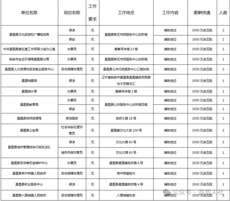 根据工作需要,昌图县14家单位补充招聘公益性岗位工作人员23人,现具体公告如下: