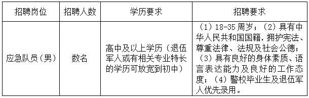 太原市迎泽区综合应急大队因工作需要,委托山西全联人力资源有限公司面向社会公开招聘数名应急队员。现将有关招聘事项公告如下: