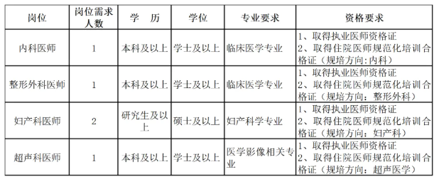 ①本科学历者年龄需在35周岁以下,须具有5年及以上相关工作经历且具备主治医师及以上资格。