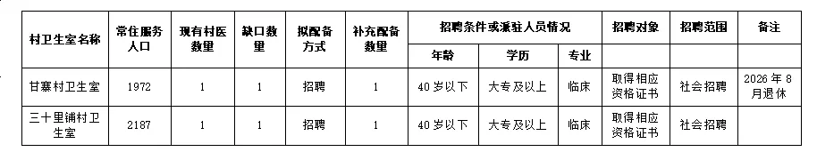 为进一步加强我院乡村医生队伍建设,增强村卫生室基本医疗、基本公共卫生服务能力,按照省卫生健康委员会《关于开展乡村医生队伍提质扩容活动的通知》(甘卫基层函〔2024〕285号)要求,经报请县卫生健康局党组审议同意,决定面向全县公开招聘乡村医生2名,现就有关事项公告如下: