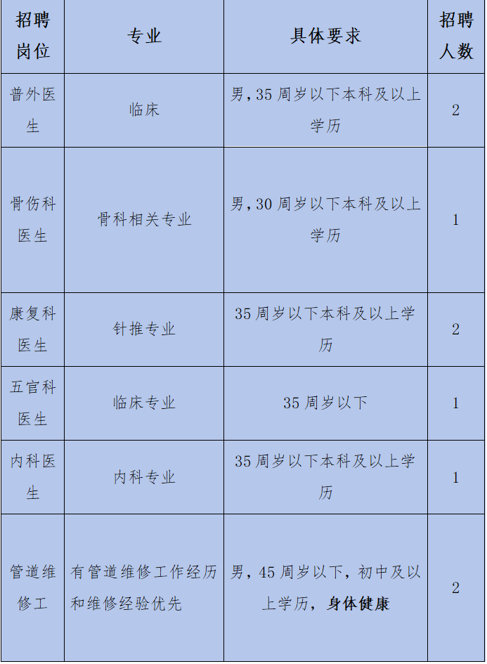 6.年龄要求:初级职称≤35岁、中级职称≤40岁,具体