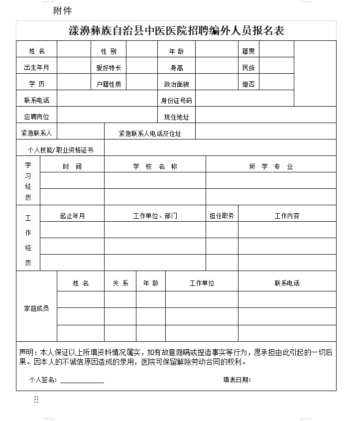 附件:《漾濞彝族自治县中医医院招聘编外人员报名表》