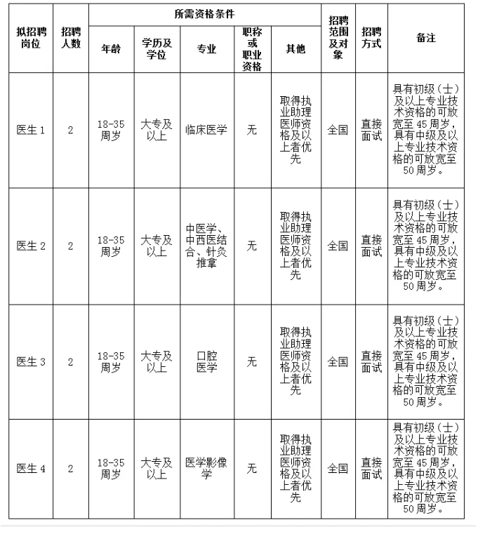 根据医院发展需要,决定面向社会招聘医生岗位工作人员共8名(编外聘用),现将招聘有关事项公告如下: