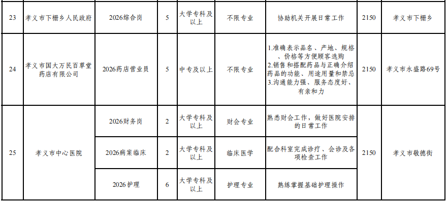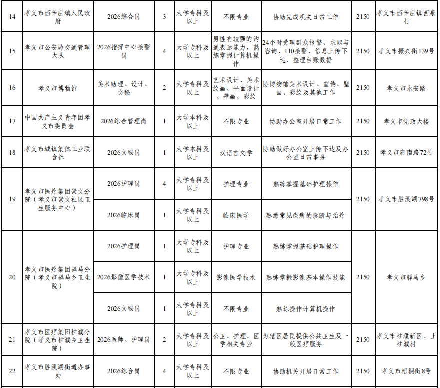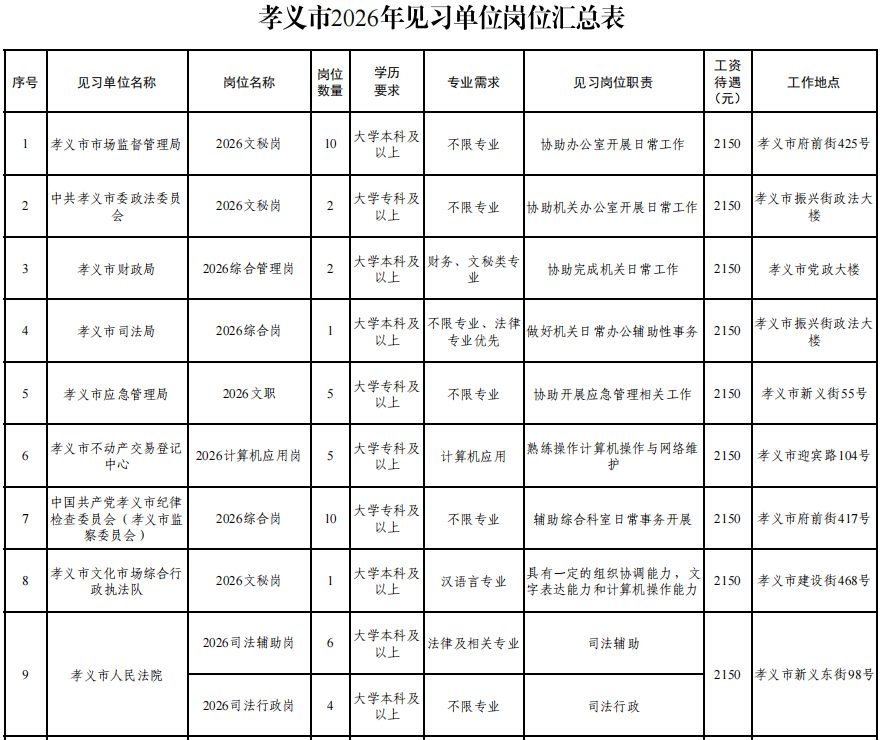 附件:孝义市2026年就业见习单位岗位汇总表