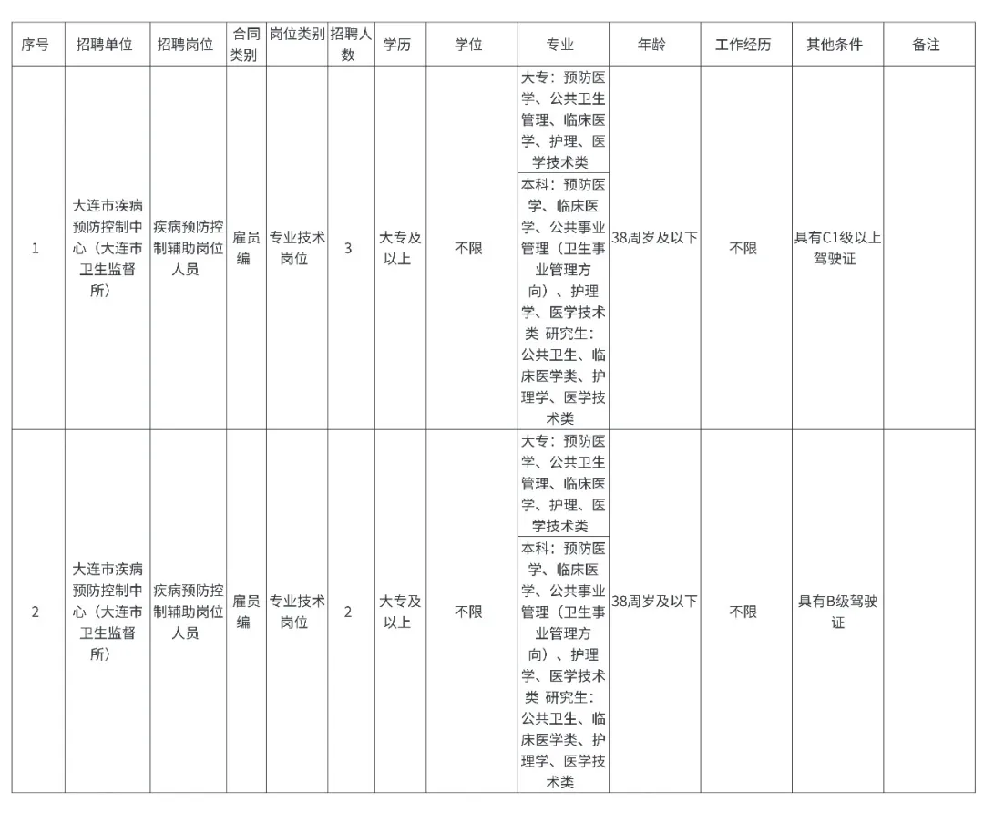 为进一步提升大连市疾病预防控制中心(大连市卫生监督所)疾病防控及应急反应能力,保障工作质量,防范工作风险,综合考虑目前工作任务强度和密度,经研究,面向社会公开招聘雇员制工作人员。