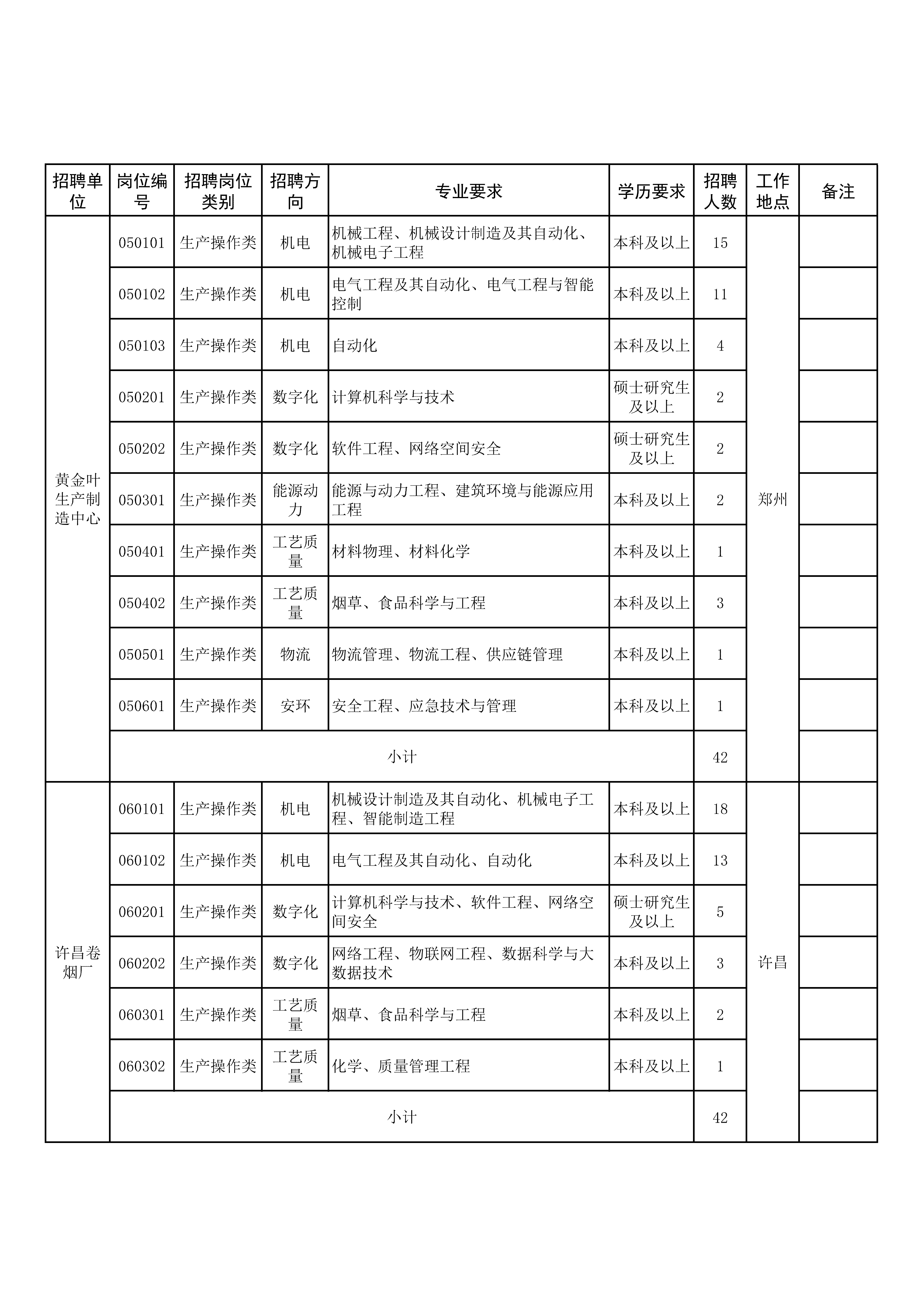 附件1:河南中烟工业有限责任公司2026年大学生招聘计划表