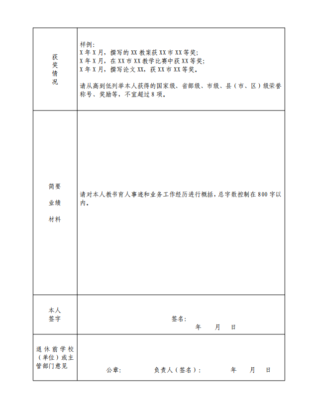 3.退休证、教师资格证、职称证、荣誉证书原件及复印件;