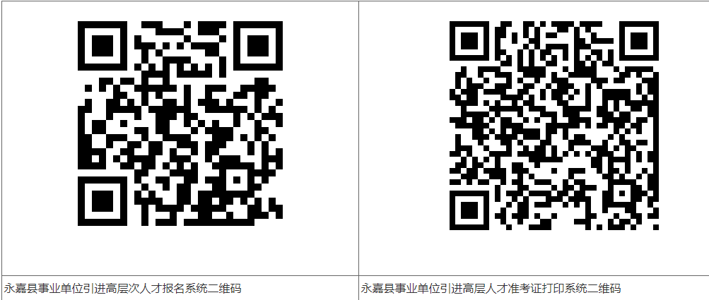 8.永嘉县事业单位引进高层次人才报名系统、准考证打印系统二维码: