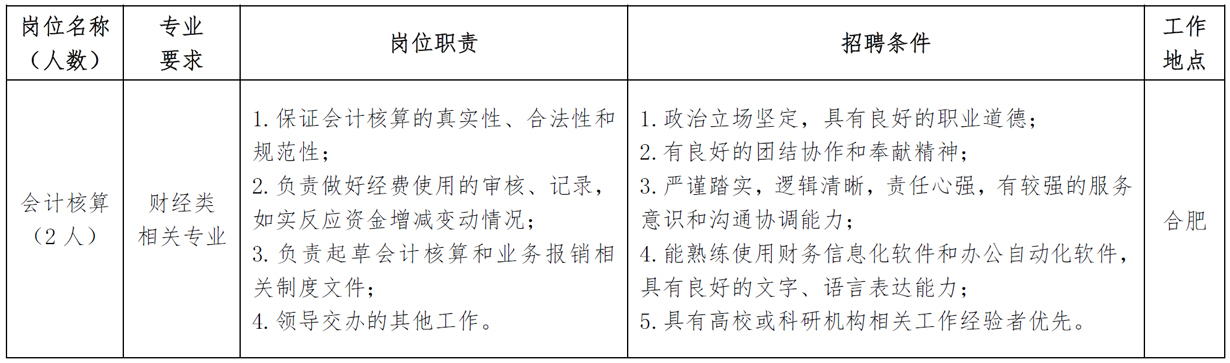 安徽省海德人力资源服务有限公司与录用人员签订劳动合同,劳务派遣至合肥国家实验室综合管理部门工作。