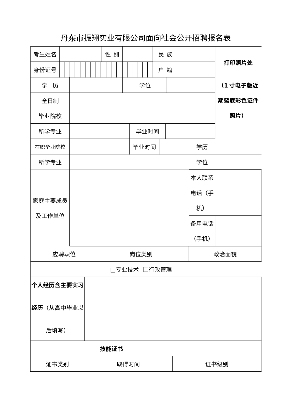丹东振翔实业有限公司招聘报名表