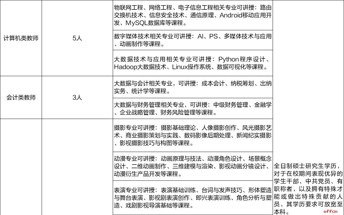 1、教师岗位需全日制硕士研究生学历,对于在校期间表现优异的学生干部、中共党员、有职称者,以及拥有特殊才能或做出特殊贡献的人员,其学历要求可放宽至本科。辅导员岗位、办公室文员岗位需全日制本科及本科以上学历。