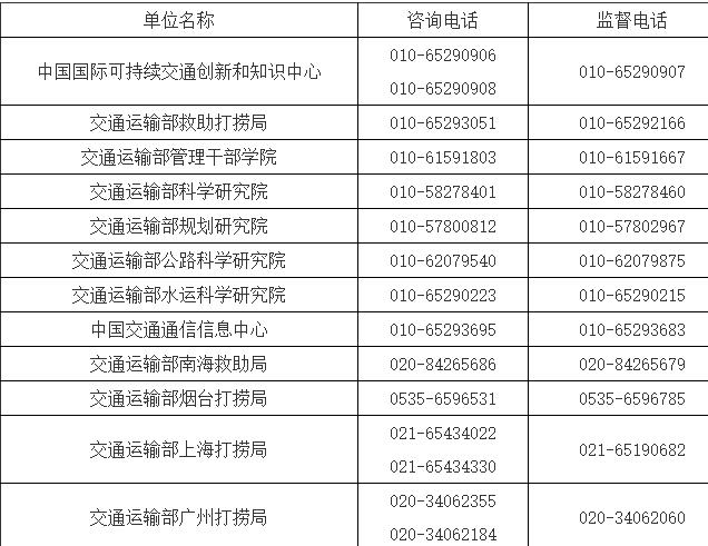 (五)交通运输部所属事业单位2026年度统一公开招聘工作技术咨询电话:010-65299061、010-65299059。