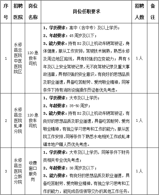因永修县总医院工作需要,决定面向社会公开招聘3名编外合同制工作人员,现将有关事项公告如下: