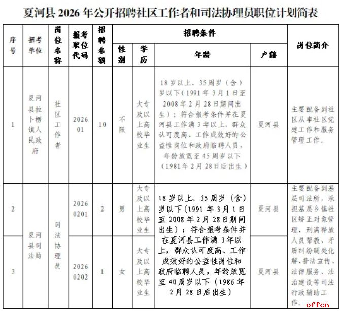 夏河县2026年公开招聘社区工作者和司法协理员
